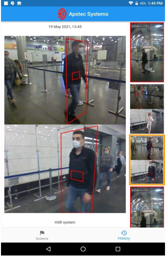 The operator can review the history of recent alarms by swiping through the photos within the application.