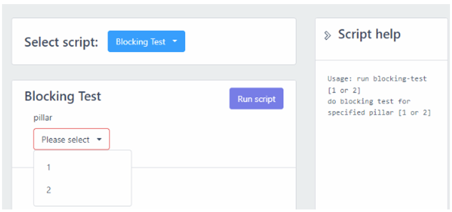 Choose the required pillar (1 or 2) from the list, then click Run script.