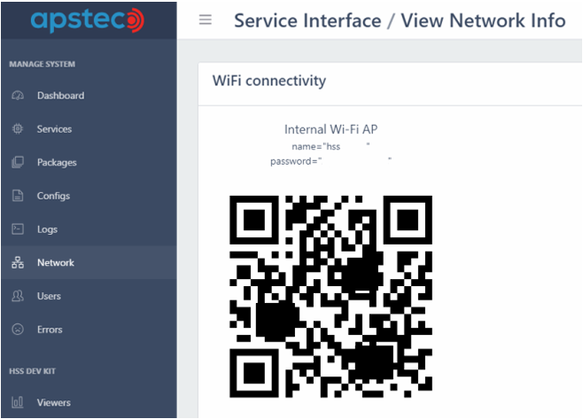 The Network tab contains a QR code for connecting to the DMD Wi-Fi network.
