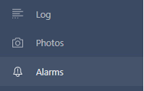 The Alarms tab displays system events and alarms in real time.